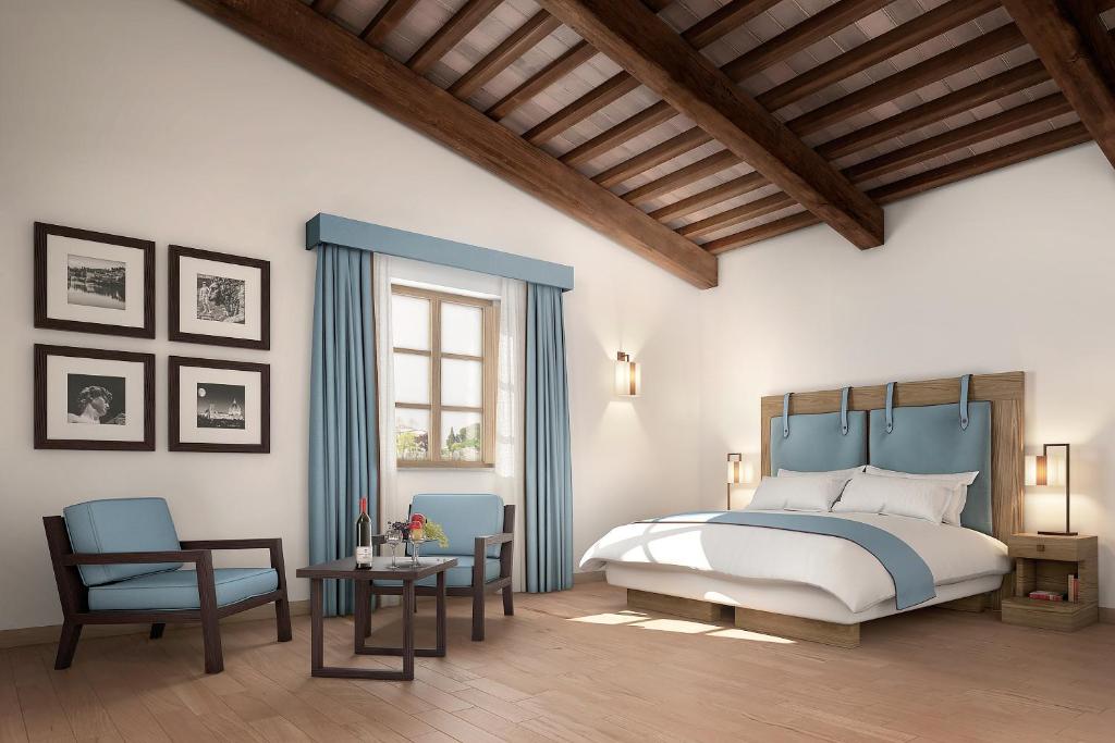Elegant rooms have frescoed walls and high‑end finishes, while the gardens are perfect for meditation or wine‑tasting at sunset.
