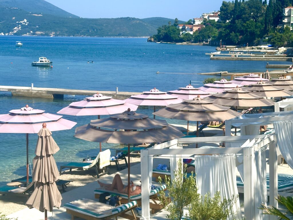 The next, sitting by the water in a quiet village in Montenegro…