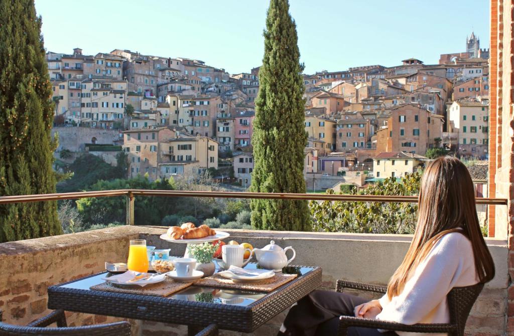 Rooms are spacious and practical, while the terrace offers sweeping views over Siena’s rooftops.