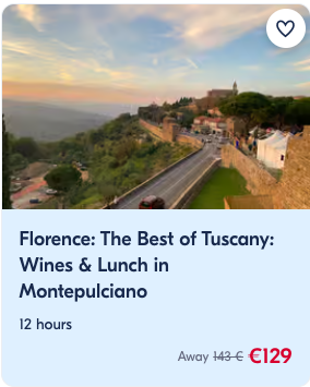 Stops in MONTEPULCIANO, Montalcino, and San Quirico d’Orcia make the route unforgettable.