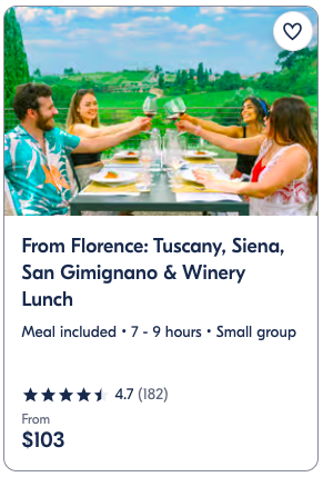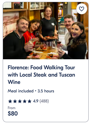 Take a food tour of Florence or a 2-hour guided sightseeing bike tour.