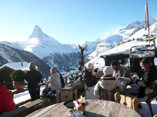 A legendry mountain restaurant with stunning Matterhorn views, Chez Vrony serves Swiss Cuisine made from locally sourced ingredients in a cozy alpine setting.